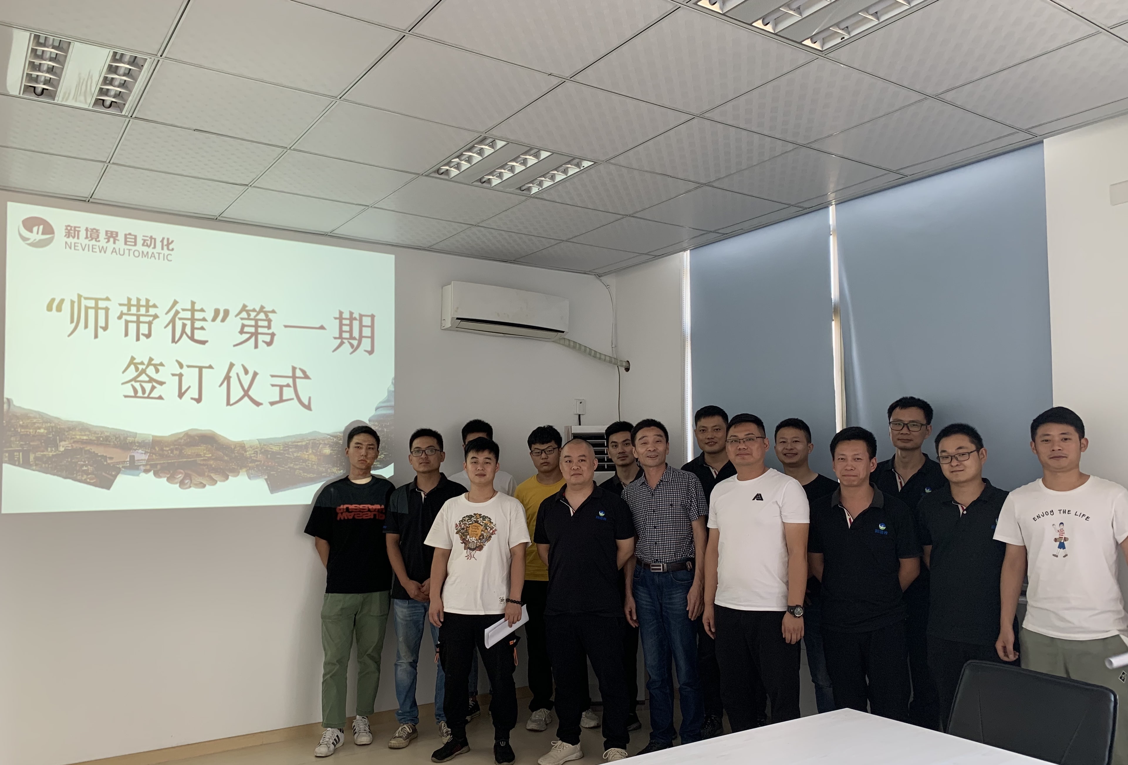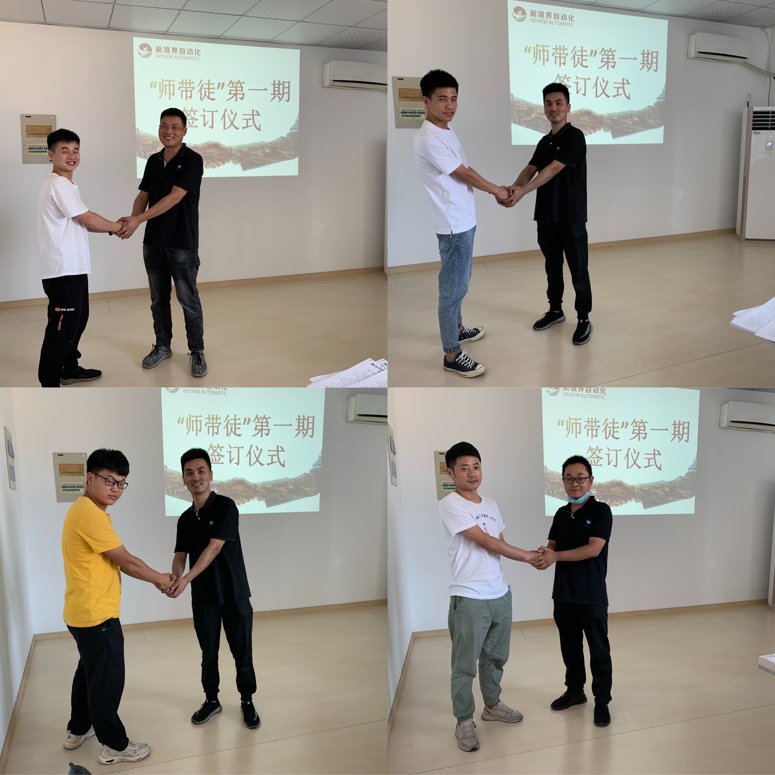 為加強公司技能型人才隊伍建設,發揚“傳、幫、帶”的優良傳統,促進員工知識水平和技能水平的持續提升,新境界自動化技術有限公司發布了《師帶徒的管理辦法》,搭建人才發展的平臺。8.13日下午,公司舉行了首屆“師帶徒”師徒互認儀式,活動由人事行政經理葉建芳主持,常務副總晁明俊以及結對師徒參加。
