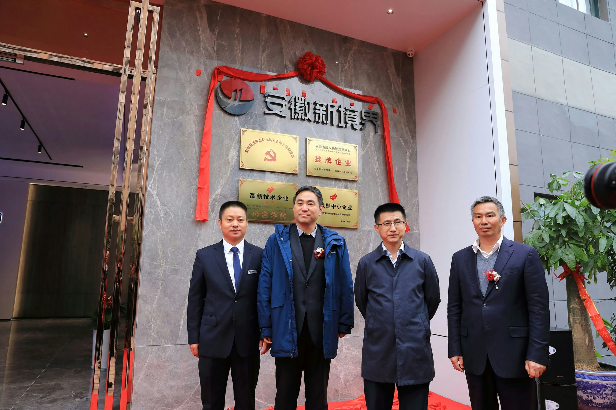 公司于12月7日舉行了喬遷開業(yè)慶典,早上十點(diǎn)各方領(lǐng)導(dǎo)和嘉賓陸續(xù)到達(dá)現(xiàn)場(chǎng),在主持人介紹完到場(chǎng)嘉賓后,安徽新境界自動(dòng)化技術(shù)有限公司總經(jīng)理殷杰先生致詞,回顧過(guò)去,展望未來(lái)!同時(shí)向前來(lái)參加儀式的領(lǐng)導(dǎo)及嘉賓表示誠(chéng)摯的謝意。隨后,合肥產(chǎn)投集團(tuán)黨委委員、董事、副總經(jīng)理江鑫先生和合肥蜀山經(jīng)濟(jì)開發(fā)區(qū)黨工委書記、管委會(huì)主任韓東先生致辭,對(duì)公司喬遷之喜表示熱烈的祝賀。十一點(diǎn)零八分,殷總和各位領(lǐng)導(dǎo)一起為新境界喬遷揭牌。