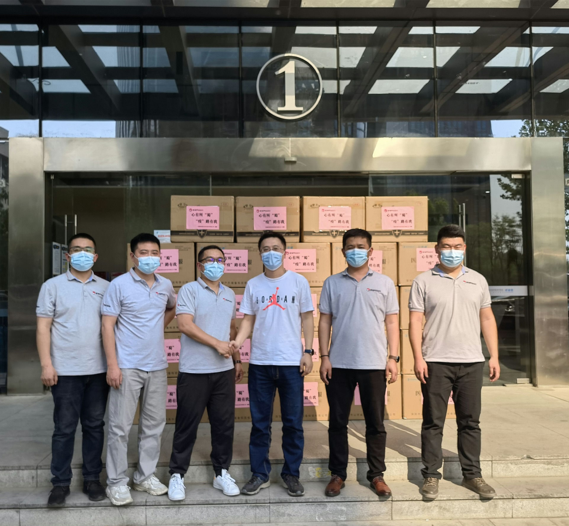 2022年4月11日,董事長殷杰委托副董事長汪存益帶領新境界員工,將物資送達蜀山經濟開發區管委會,助力防疫一線工作人員,傳遞能量和信心,攜手同心打贏新冠肺炎疫情防控阻擊戰。